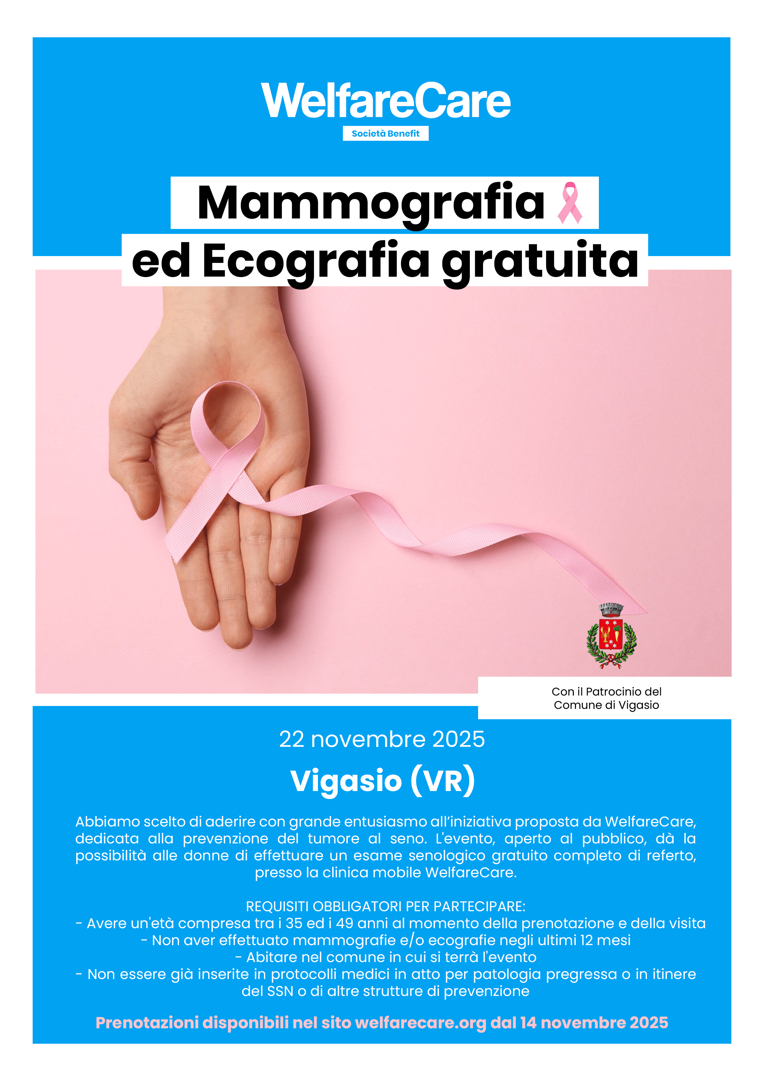 Sabato 22 novembre siamo orgogliosi di ospitare nel nostro comune l’iniziativa proposta da @WelfareCare dedicata alla prevenzione del tumore al seno.